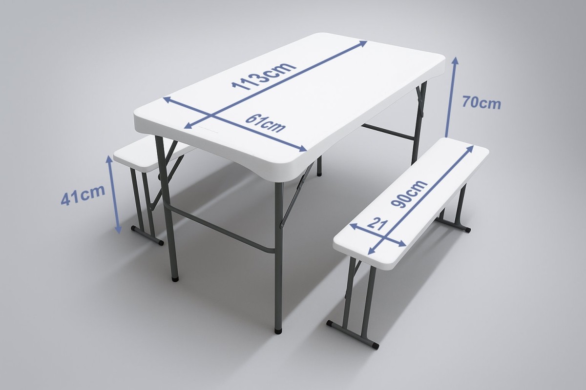 Átgondolt, „bőrönd” kialakításának köszönhetően a szett egyszerűen összecsukható: a padokat a asztal belsejébe helyezheted, így az egész garnitúra egy kompakt, fogantyús kofferré alakítható. Szinte semennyi helyet nem foglal az autóban, garázsban vagy pincében — ezt minden szállításnál és tárolásnál értékelni fogod.