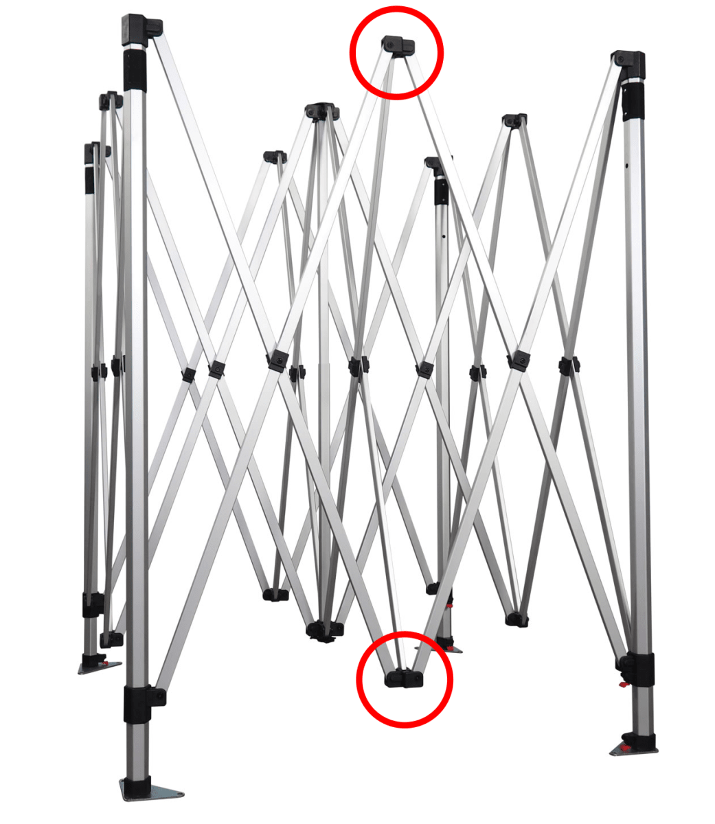 Erős műanyag összekötő elem, amely a 40 mm-es Hexagonális profilú ollós sátorváz rudazatának stabil rögzítésére szolgál. Felső és alsó kötőelemként egyaránt használható, biztosítva a váz stabilitását és a nyitó-záró mechanizmus zökkenőmentes működését.